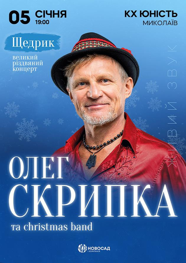 Олег Скрипка та Christmas BandДрузі, запрошую вас на особливе різдвяне дійство, яке наповнить серце світлом і радістю! Разом із Christmas Band ми підготували чарівну програму «Щедрик», де збереться вся святкова енергія Українського Різдва: Маланки та Коляди. На вас чекає:- Легендарний український «Щедрик» у живому виконанні - Колядки та щедрівки, з усіх куточків країни. - Атмосфера справжнього Українського Різдва з відчуттям єдності та любові. - Теплі побажання, пісні на добро, на радість і на перемогу! У цей непростий час ми як ніколи потребуємо любові, сили духу та єдності. Давайте разом заспіваємо так, щоб український «Щедрик» лунав гучно по всій землі — як символ відродження і нової сильної України! Купуйте квитки за найкращою ціною!Приходьте колядувати з друзями та родиною разом з Олегом Скрипкою!
