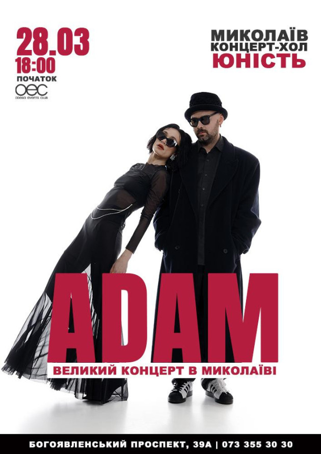 ADAM успішно справляється з цією задачею. Приходьте на великий концерт гурту у Миколаєві та насолоджуйтесь неймовірною творчістю.